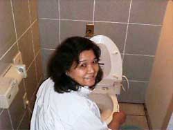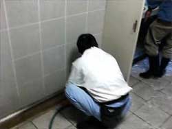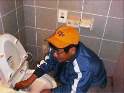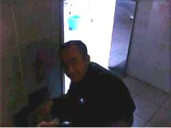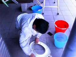 世話人の伊井さんです。 声をかけても聞こえないぐらいに便器と向き合 ってます。 |