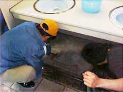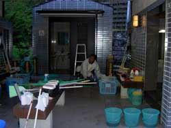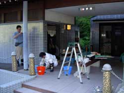 | 排水溝の掃除と床磨きの様子。 | ||
