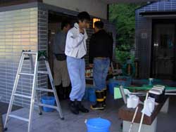 | 床磨きにかかります。 カメラが水没したために写真はここまでです。 写真担当は、花山でした。 今日のトイレは、永平寺のお膝元でもあるの でしょうか、最初から大変にきれいにされてい ました。 |