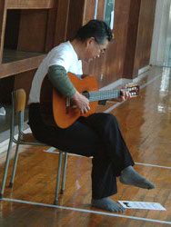毎年恒例(!?)の松木さんのギターに 合わせて「ふるさと」の合唱をしました。 |