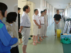 ↑↑↑ ラジオ体操後、 各掃除場所へ! |