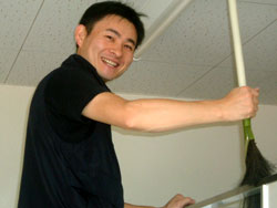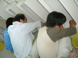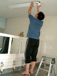 | ↑↑↑ 蛍光灯も徹底的に掃除します。 |