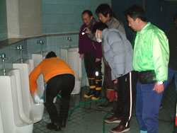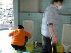 早速、掃除開始! 今回は、男子トイレに 集中しました。 |