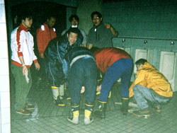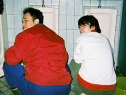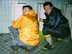 | ↓↓↓男子トイレの掃除の様子。みんな笑顔ですねー!↓↓↓ | ||