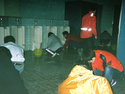 便器の後は、 前回できなかった床を みんなで丁寧に 掃除しました。 ←←← →→→ |