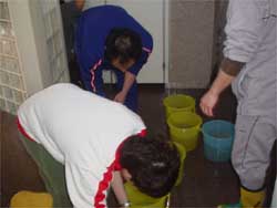 まずは掃除道具準備及びストレッチ体操。