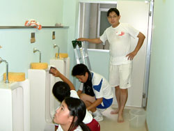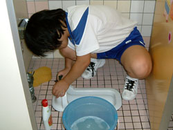 | ↓↓ トイレ掃除開始! ↓↓ 五カ所に分かれて リーダーの指示に従います。 |