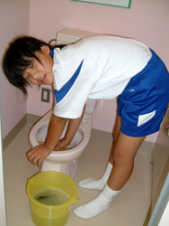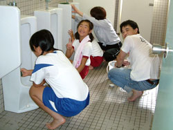| ↑↑↑ 1階トイレの様子 学年が違っても、とても仲の良い皆さんでした。 便器がピカピカになりましたね。 ↓↓↓ |
