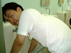↑↑↑ 外のトイレは 2人がかり! |
