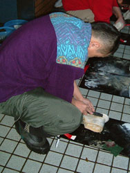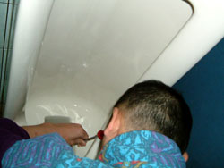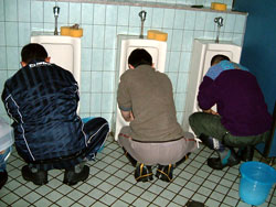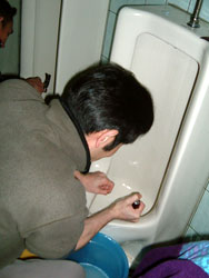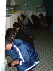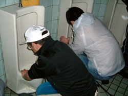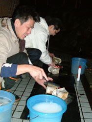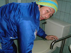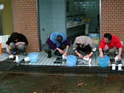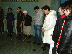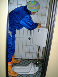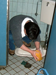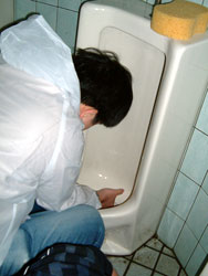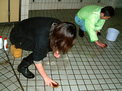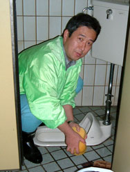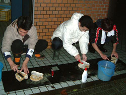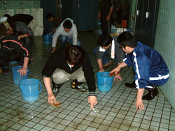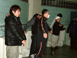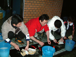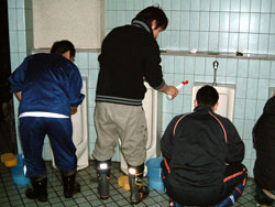 | ↑↑↑ さっそく便器に取りかかる若鯖塾4期生の皆さん ↑↑↑ | ||||
