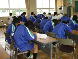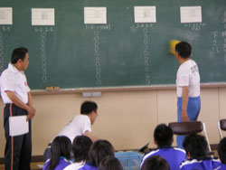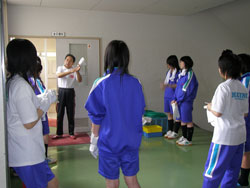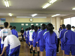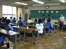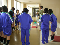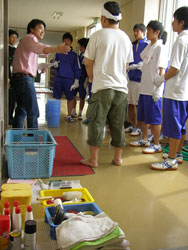 ←←← →→→ 各班のリーダーに従い、 自己紹介 道具の説明 だんだん生徒の目が真剣に なっていきます。 ←←← →→→ |