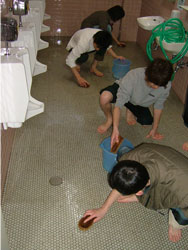 | 今年度で5期目となる「若鯖塾」が開催され、 「地域を美しくする研修」として 鯖江青年の家でトイレ掃除を行いました。 |